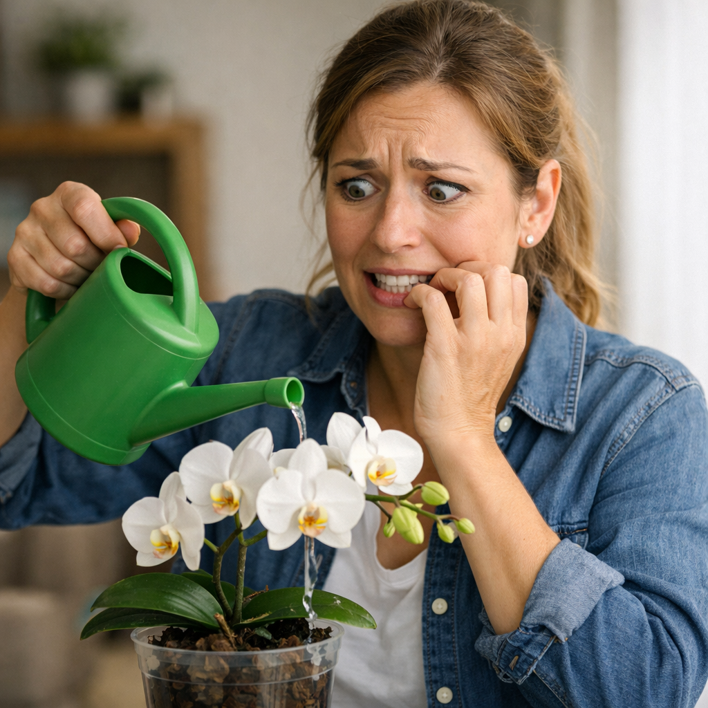 Um guia visual para identificar em segundos se a Phalaenopsis realmente precisa de água, evitando regar por impulso ou medo.